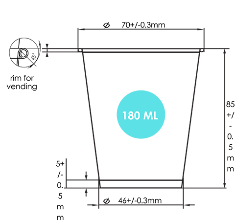 Exklusiver Randdurchmesser für Automatenbecher zur Vermeidung von Blockierungen.